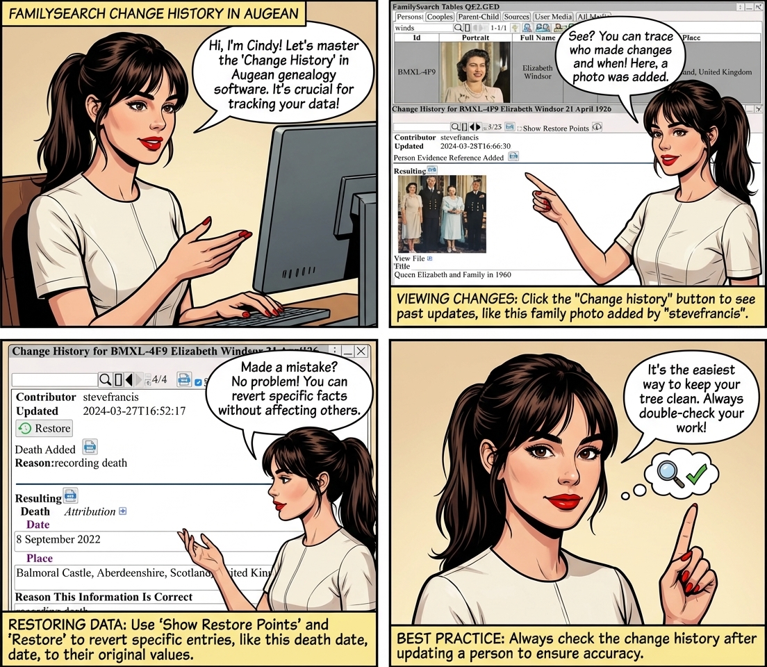 FamilySearch Change History![]() Change history information is available for persons, couples, and parent-child relationships. to view the change history. ![]() Search the change history using