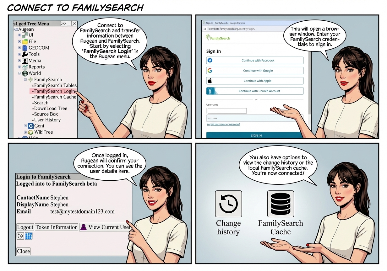 Connect to FamilySearch and transfer information between Augean and FamilySearch.